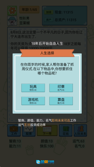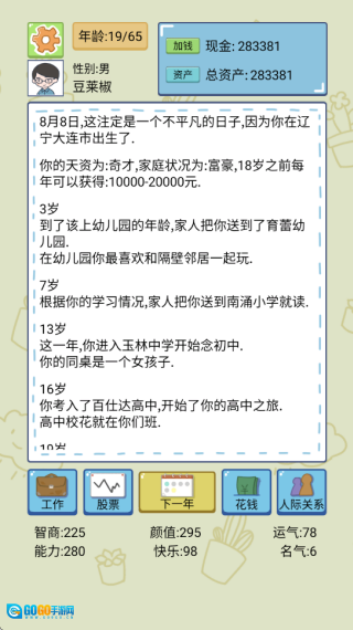 玩家从随机降生的城市与家庭开始,身份、家境和时代背景都由命运决定,起点就蕴含着无限可能。