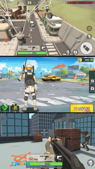 在游戏里,玩家会踏入多个主题特色鲜明的卡通战场,和AI或者其他玩家进行轻松诙谐的射击对抗。