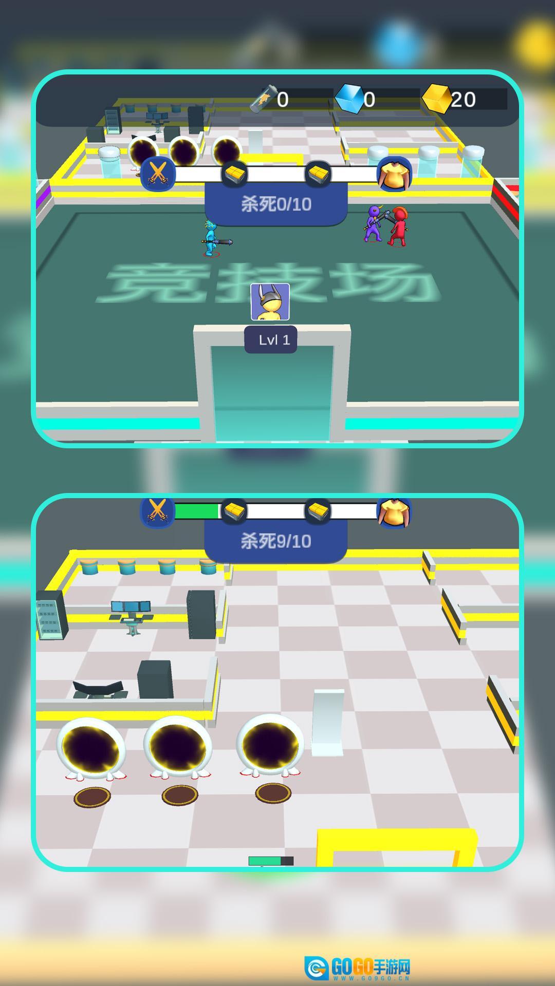 玩家在游戏里击杀敌方单位后,能拾取掉落的金钱,用这些金钱就能解锁兵营、武器等不同功能,还能对它们进行升级。