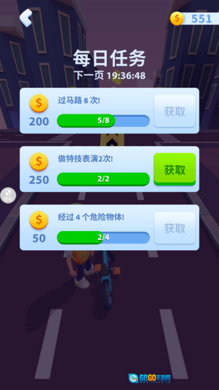 3. 基础操作几秒就能上手,可若想在高难度街区拿下三星评价,就得靠娴熟的车技、周全的路线规划,再加上些许运气加持。进入游戏后,通过左右滑动屏幕来操控角色在场景里移动;按住屏幕时角色会加速前进,松开手指则停止移动。