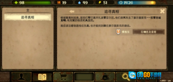 首先,到灯塔左下方的那座主城里收集物资,重点是食物,特别是水——水是维持生存的关键,一定要优先备好。