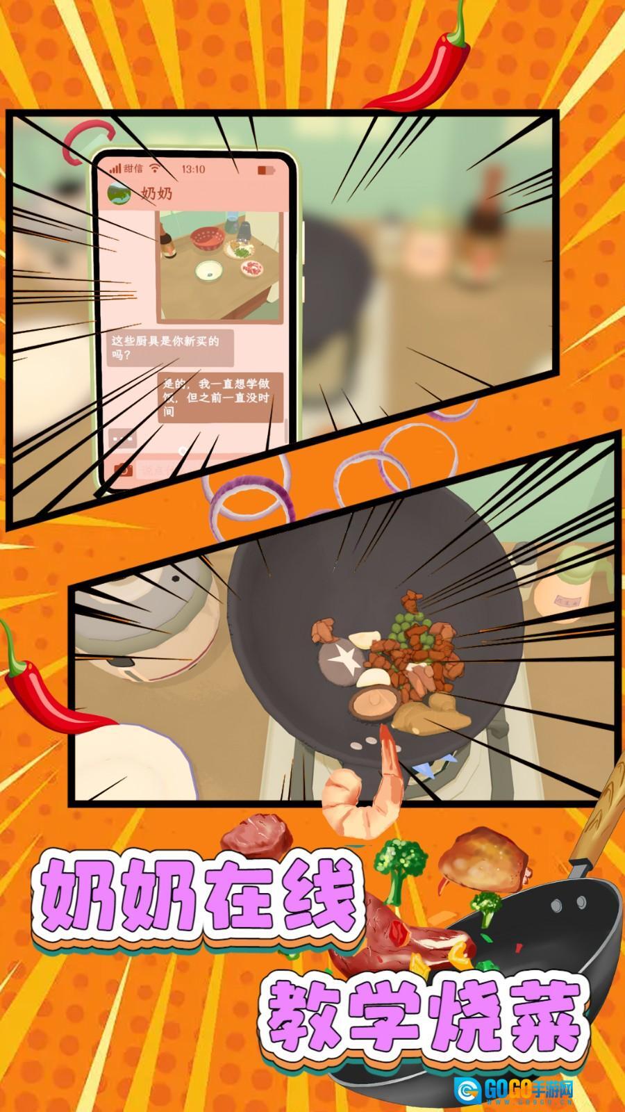 一开始跟着奶奶学做基础菜式,完成这些任务就能解锁必需的厨具和调料。