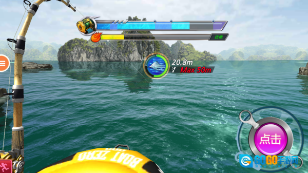 钓鱼时要留意每一个细节,别让小鱼轻易溜走,得快速点击轮盘把鱼线收回来。