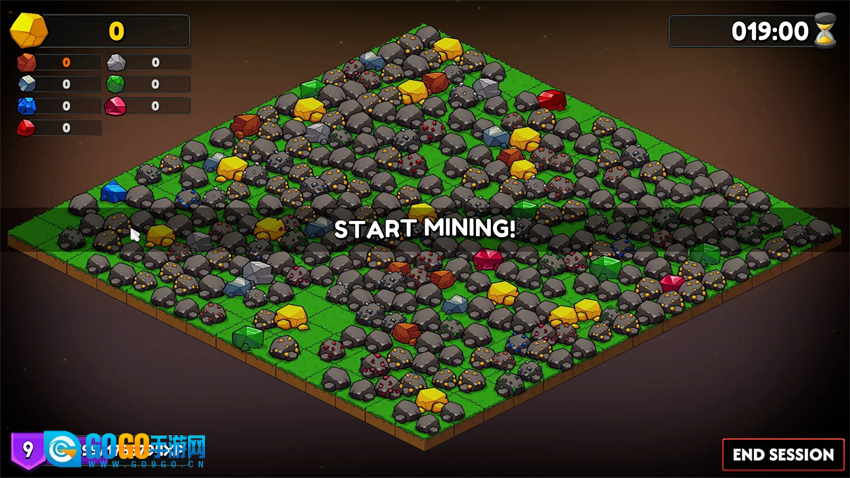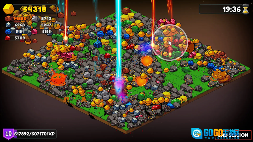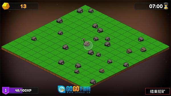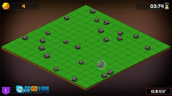 游戏开始后,点击矿石即可开始挖矿,悬浮球覆盖范围内的所有矿石都会被一并采集。