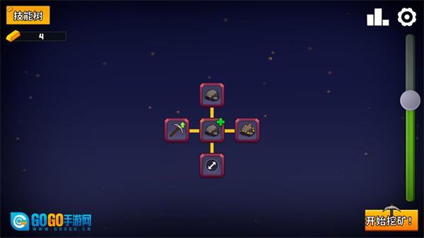 点击升级按钮后,可消耗已获得的金块来购买各类升级项目,而每一项升级都能助力你获取更多矿石。