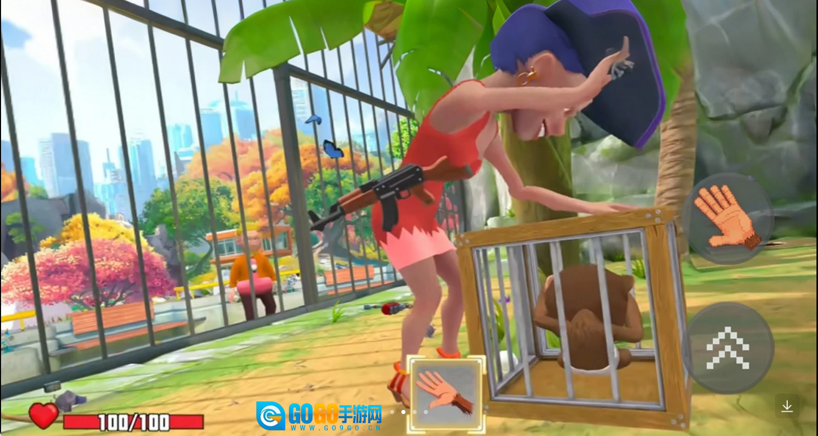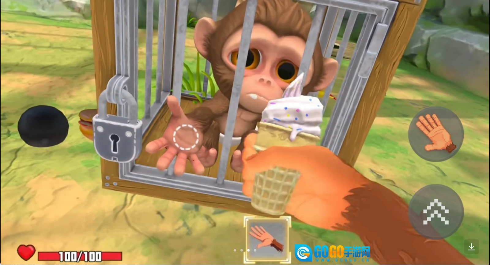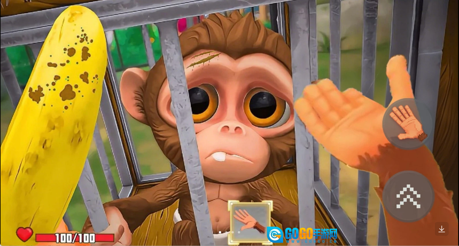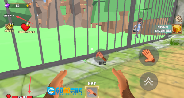 操控猴子凑近笼子边缘,利用抓取功能抓住笼外的人类,接着通过后续的互动操作,开启与人类的对抗进程。