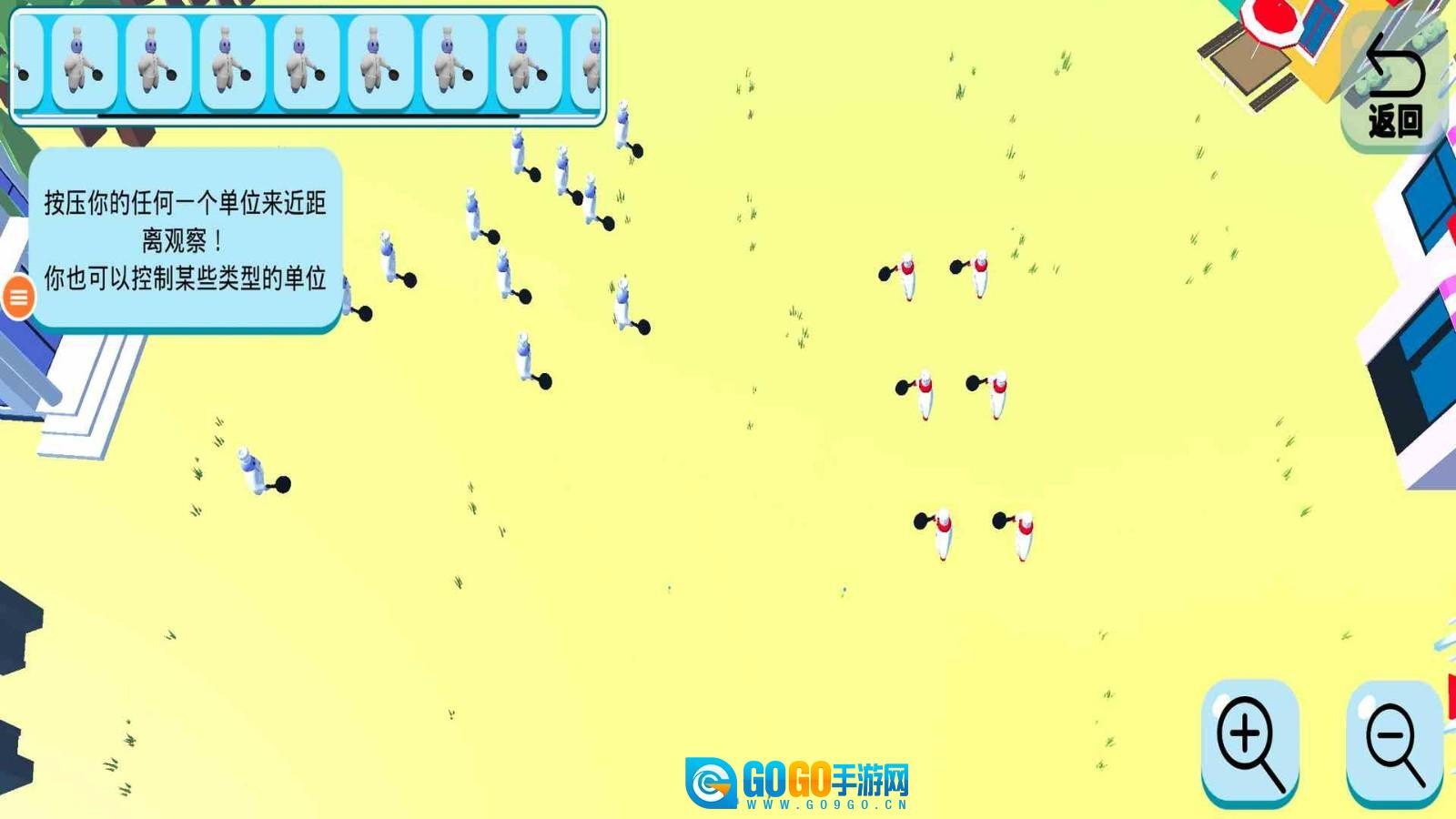 轻松诙谐的战斗氛围:和传统硬核策略游戏不一样,这款游戏借助滑稽的火柴人动作、夸张的打击特效等元素,让战斗过程趣味十足。