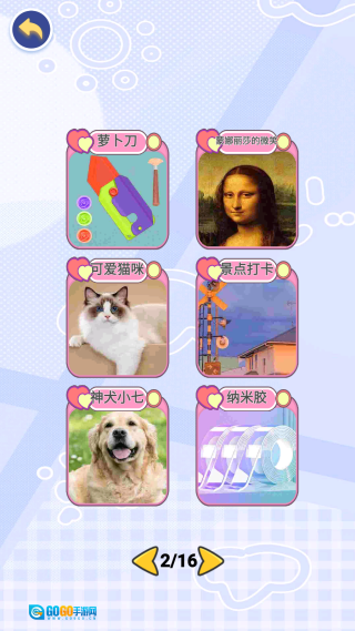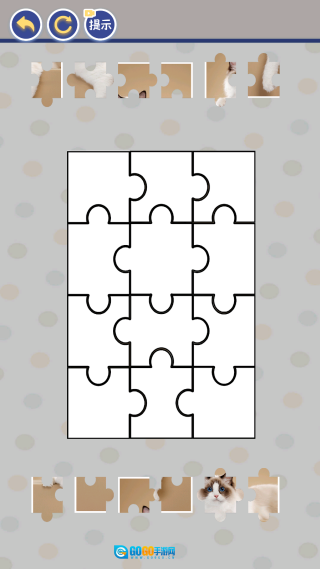 如图所示,点击“可爱猫咪”选项后,即可进入拼图挑战环节,快来完成挑战,让可爱猫咪的图案恢复原貌吧!