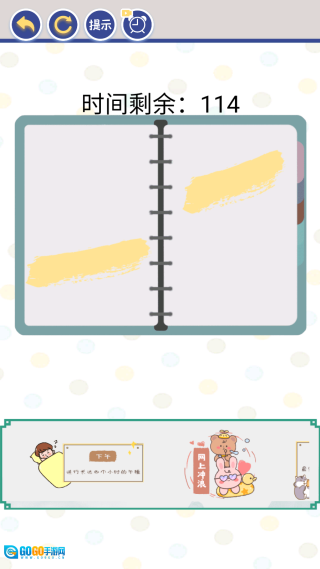 如下图所示,点击“手账达人”选项后,手账制作挑战便会开启,玩家需要把各类贴纸粘贴到手账页面上。