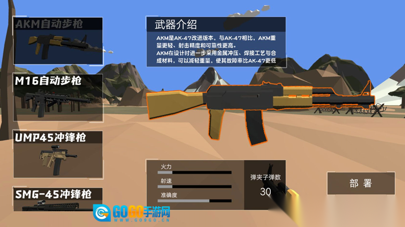 这是一款模拟射击类游戏,具备真实的射击机制。当玩家扮演小兵时,需要完成瞄准、射击、换弹等操作,并且游戏中不同武器在诸如后坐力、射程等特性上存在差异。
