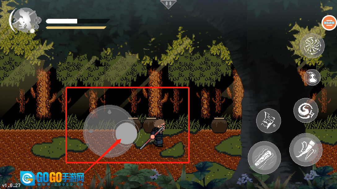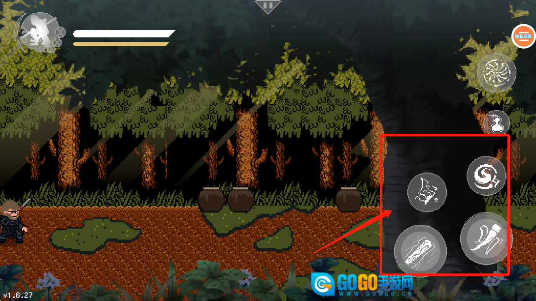屏幕右边的是使用技能,来攻击怪物。