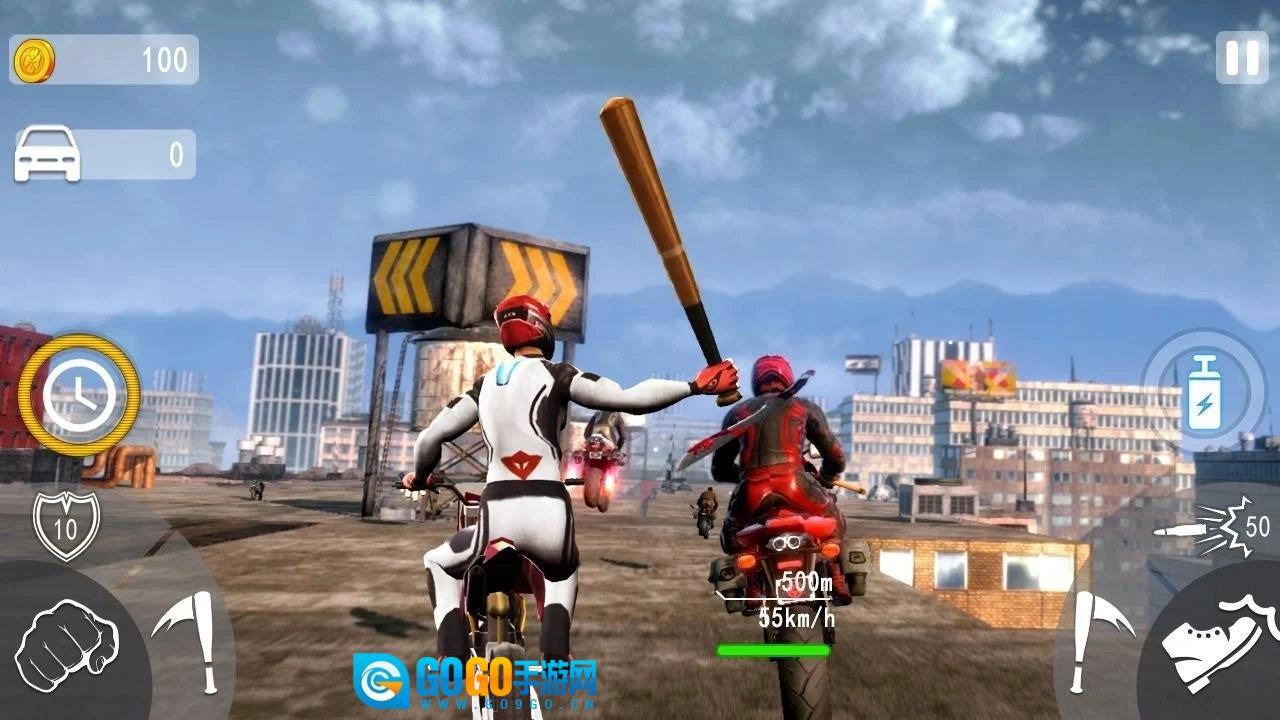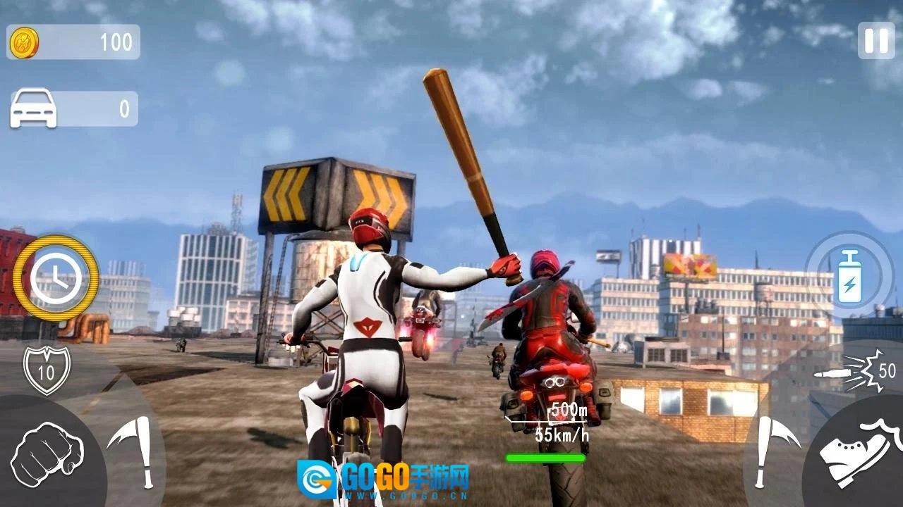 倾斜设备来操控越野自行车模拟器。点击蝙蝠、斧头、脚踢和拳打按钮击败对手;使用亚硝酸盐按钮为超级摩托车模拟器提速。攻击并超越任何试图在游戏中领先你的对手。这是一款动作赛车游戏,你将在追逐、热血与速度交织的史诗旅程中驾驶摩托车。旅途中,通过完成比赛、暗杀等任务,你可以升级角色、自行车和武器。你需要运用踢击、抢夺、反击等动作来生存。死亡是荒原道路上的常客,但并非终点——若被击败,你仍能保留所有收益,重新投入赛事。