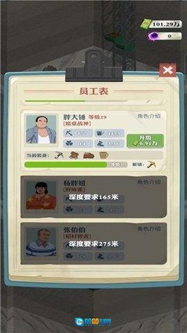 招到员工后,你可以持续对他们进行升级,解锁新的装备,增强挖掘能力,等级越高,升级所需的金钱也就越多。