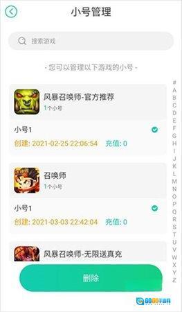 例如,若要删除第一个游戏的小号。