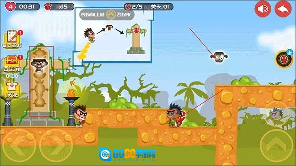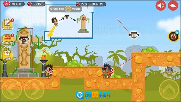 1、安装好屁王兄弟双人版,进入游戏,长按如图所示的键可以让角色飞起来。