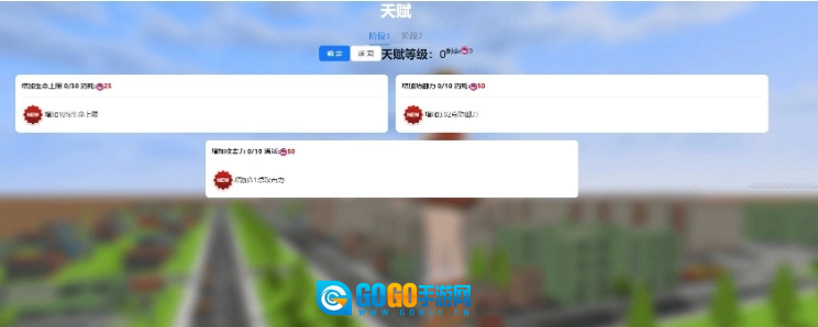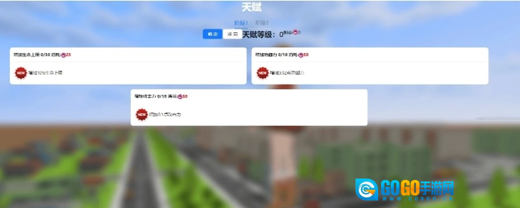 4、进入小人角色的天赋选择页面,强化能力需要消耗宝石,但初始阶段没有宝石,先直接确认继续。