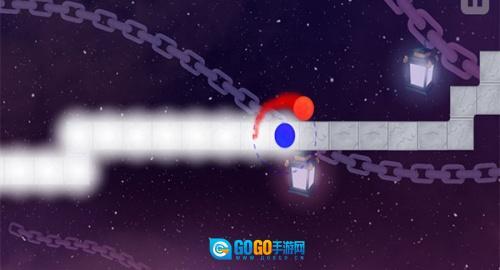 游戏采用单键点击的闯关玩法,玩家需要操控双星在赛道上有序地前行并展开冒险。