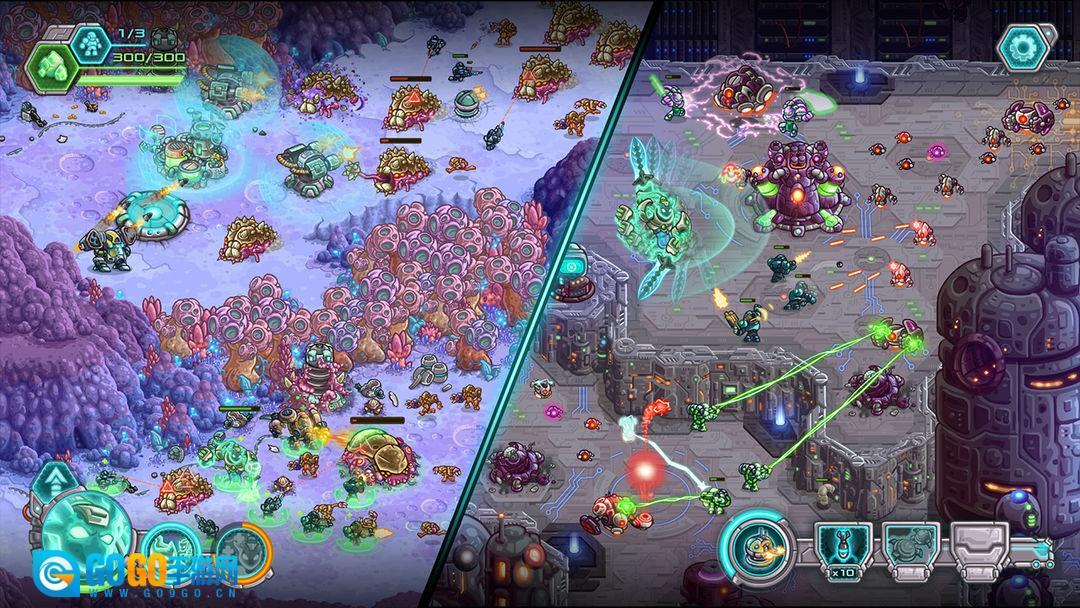 游戏的故事背景设定在星际战争时代,玩家将化身为地球战队的指挥官,在一颗未知的行星上与异星生物展开对抗,守护己方基地的安全。