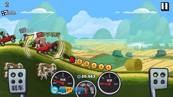 游戏的操作方式十分简单,左侧的按钮用于刹车,右侧的按钮则是油门。当车辆处于地面行驶状态时,踩下油门即可加速,按下刹车便能减速。