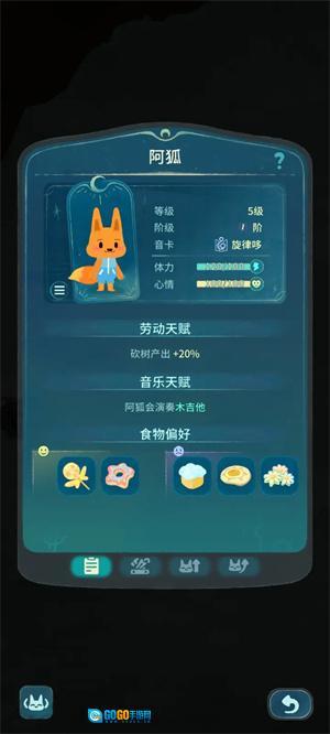天赋:具备特定天赋的小咕咚在开展对应活动时,心情和体力的消耗将降低20%。