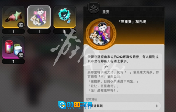 在羁绊界面里,当羁绊等级达到五级时,会获得【三重奏观光线】这一道具作为奖励。