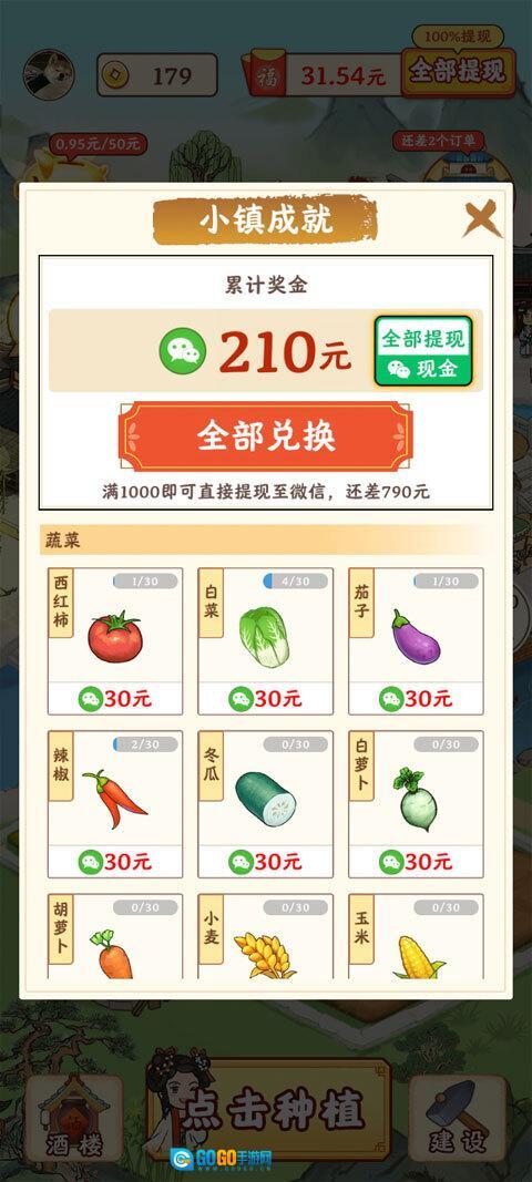完成小镇成就任务后,可一次性将累计的奖金兑换为金币。
