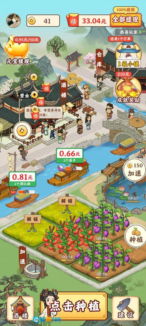 江南小镇红包版是一款充满趣味的田园模拟经营游戏。在游戏里,你会来到一个满是诗意的小镇,感受种植、养殖与建设的快乐。你可以先从种植普通农作物起步,慢慢解锁稀有植物,还能喂养各类可爱的宠物动物,让自己的农场一点点发展起来。经过用心经营,你的小镇不但会越来越繁荣,还能带来丰厚的收益。