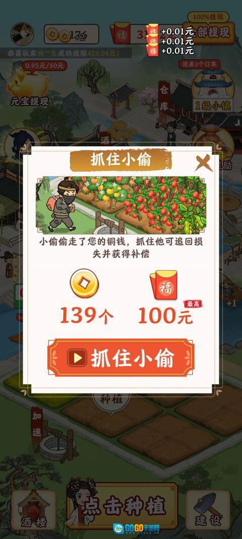 抓住潜入农场的小偷,既能挽回损失,还能额外获得补偿奖励。