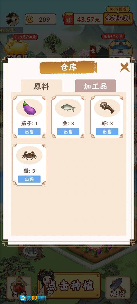 仓库里要是有多余的原料,也能拿去出售,这样就能获得金币了。