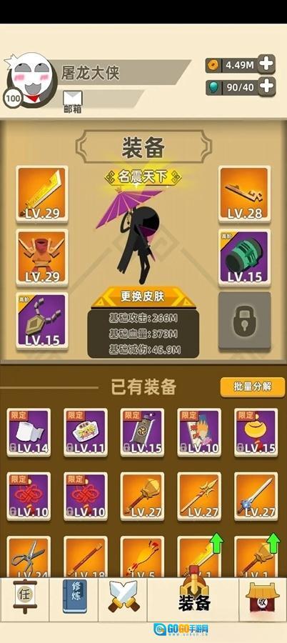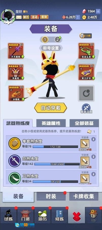 ⑪大侠峨眉搭配建议:前30关可选用倚天、虎皮与头箍的组合;后20关则推荐搭配屠龙、虎皮和头箍。