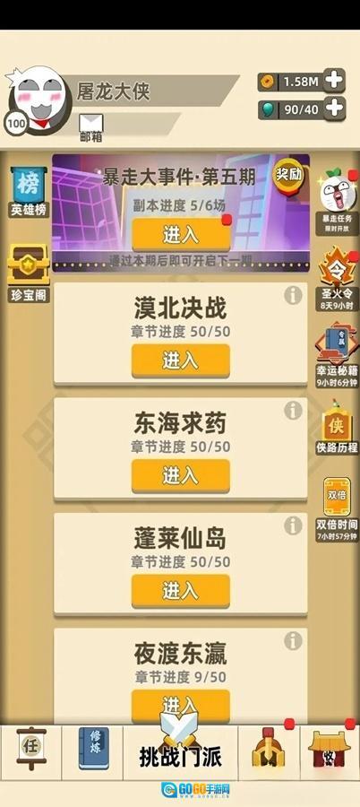 ②通过大侠关卡后,建议选择挂机大侠关卡。这里不需要完全通关,只要打过第一关就可以,后续的关卡可以交给跳关功能来处理。