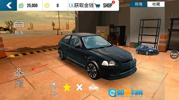 在车库中你能看到自己拥有的全部车辆,旁边还有车辆升级的按钮。