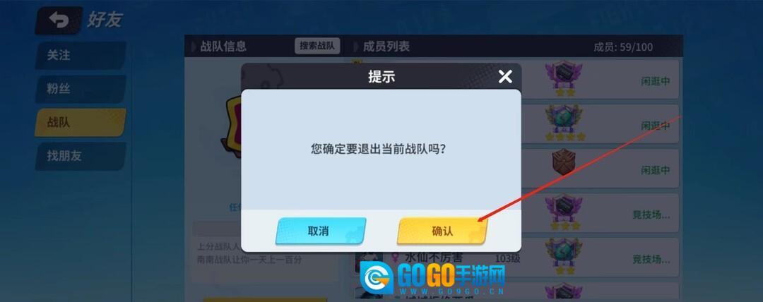 然后点击确认即可成功退出战队