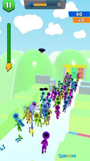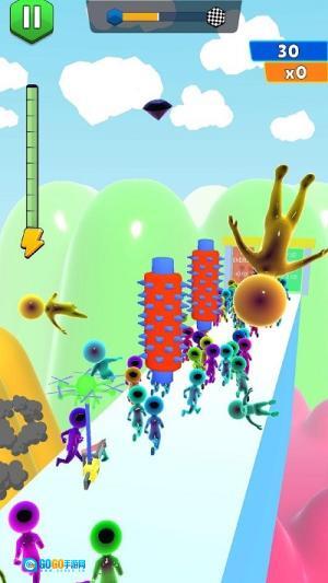 《果冻人快跑》是一款操控软体角色奔跑的休闲游戏。你需要引导造型独特的果冻人在赛道上不断前进,灵活躲避飞机投下的切割障碍。游戏有多种皮肤可供选择,通过收集不同奖励来获取积分,简约的画面风格加上富有弹性的角色动作,能带来轻松有趣的奔跑体验。