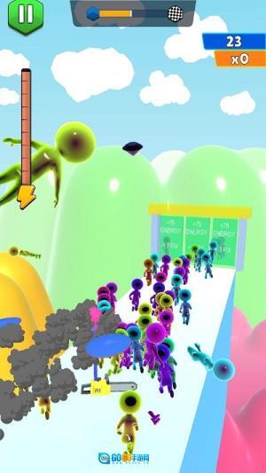玩法赛场狂奔:操控果冻人在赛场里奔跑,避开头顶飞机悬挂的刀具,坚持到最后就能获胜,每次成功通关都充满成就感。