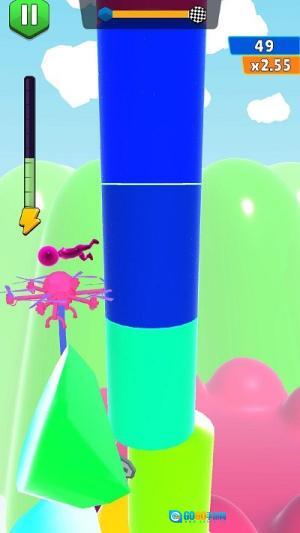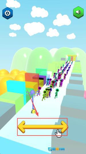 操控果冻狂奔:指挥果冻人在赛道上敏捷穿梭,留意头顶飞机的行踪,迅速避开掉落或悬浮的刀具,防止被划伤。