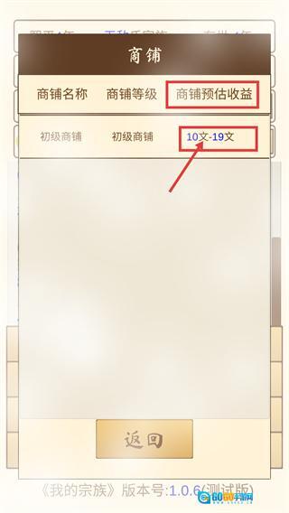 进入【商铺】界面后,能看到【初级商铺】所对应的【商铺预估收益区间为10到19文】,合理布局商铺可以增加宗族的持续收益。