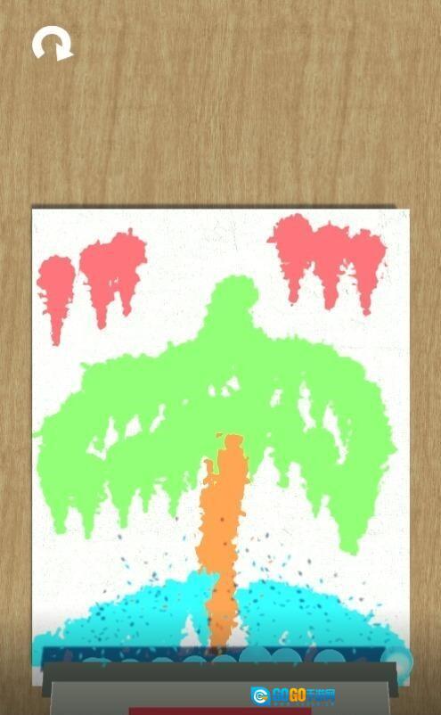 当你用彩色气泡把整幅画都填满后,点击刮板并向下拖动它,等刮完所有气泡,画面就会自动完成上色啦。