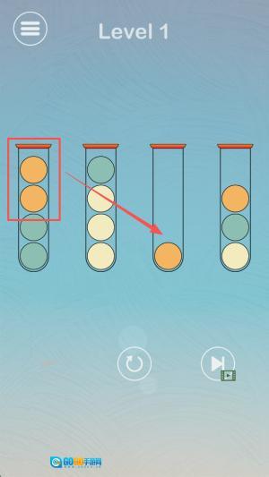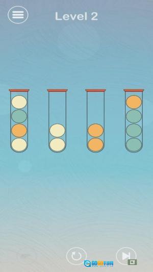 开启分类前的准备工作:进入关卡后,先观察小球的颜色和管子的分布情况,明确本次的分类目标,同时熟悉小球之间调换位置的操作逻辑。