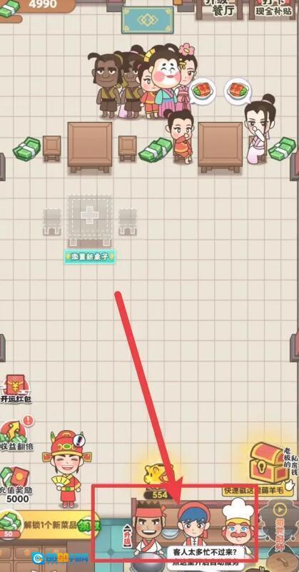 点击之后花费一定的金币就可以获取更多的厨师
