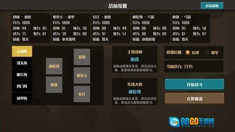 2、战阵布置完毕后,士兵们随即展开进攻,作战过程中可随时增派人手投入全面战斗。