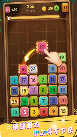 合成方块是一款富有创意的益智游戏,为玩家带来了极具魔性的全新体验!游戏里的2048数字方块玩法让人眼前一亮,只要把相同数字的方块拖动合并,就能开启轻松的冒险之旅。但即便操作简单,想要领悟游戏的精髓却并不容易!随着时间流逝,方块会持续自下而上堆叠,一旦合并的方块触及顶部,游戏就会结束。更棒的是,游戏采用极简风格设计,雅致的木质方块既好看又不会让眼睛疲劳,很适合喜欢这类游戏的朋友来挑战,赶紧试试吧!