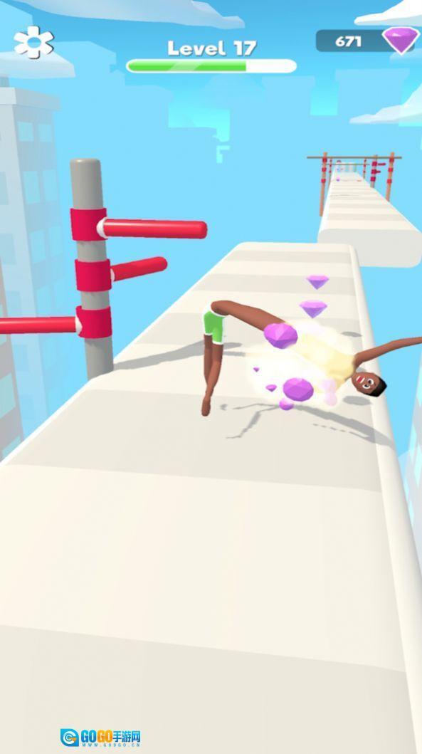在关卡挑战过程中,要是碰到障碍,你可以通过变换身体形态来避开它们。