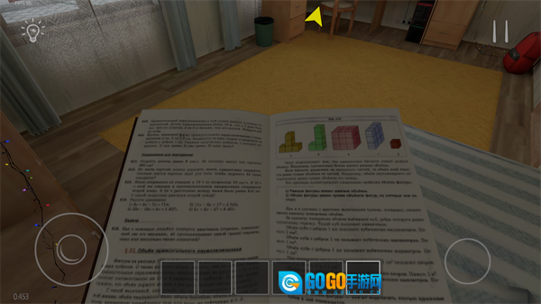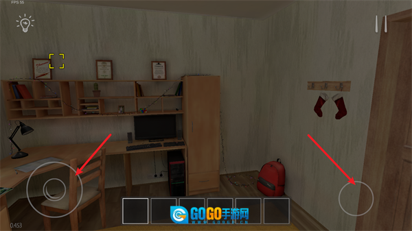 进入游戏后,你会出现在自己的房间里,左侧摇杆可用于控制移动,右侧按钮则能让你完成起立和下蹲的动作。