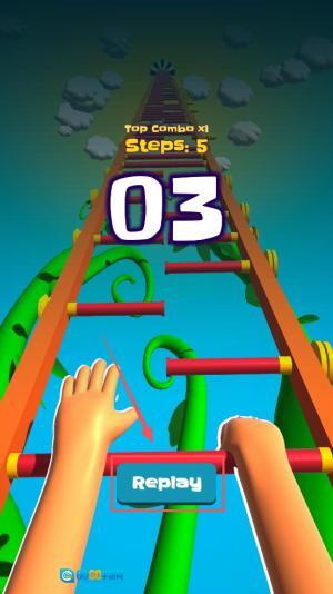 开始攀爬:进入计时界面后,会看到“0:1”和“stcps:3”的提示,接着跟着节奏点击屏幕就能向上攀爬。