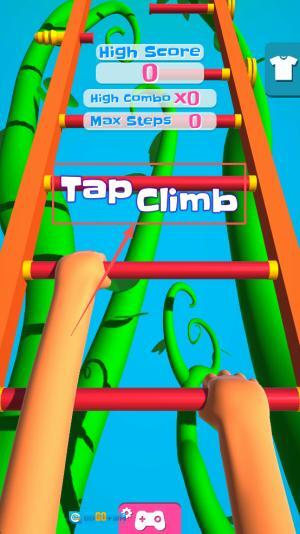 进入游戏的操作步骤如下:先打开游戏主界面,查看High Score和Max Steps的目标要求,然后点击“Tapclimb”按钮即可开始游戏。