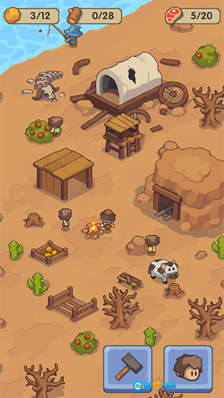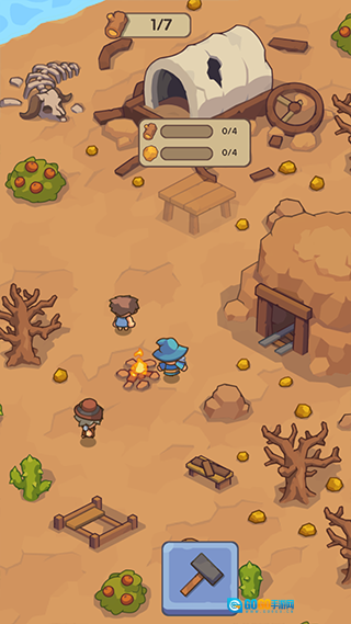 游戏刚开始的时候,最关键的事就是收集木材、石块和食物这类基础资源。用这些资源打造工具后,就能砍树得到木材、挖矿拿到石块,也能靠打猎或者采集来确保有足够的食物。