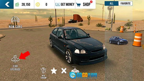 进入车库界面后,点击左下方的【CAR UPGRADE】汽车升级选项。
