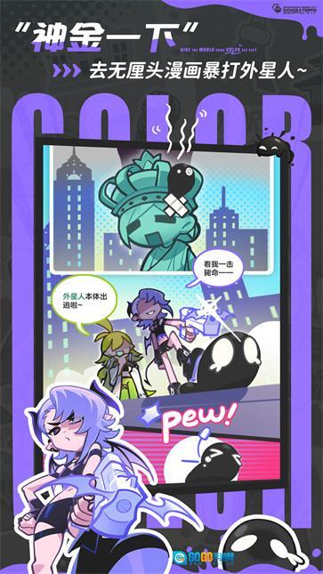 这是一款充满魔性与搞怪元素的创新涂色弹幕竞技游戏,能为玩家带来酣畅淋漓的染色乐趣。游戏采用了幽默风趣的无厘头漫画风格,营造出别具一格的视觉感受。玩家的任务是召集形形色色的“打工人”与“不靠谱”的神祇,共同抵御外星入侵者,通过击败敌人来为地球重新上色。