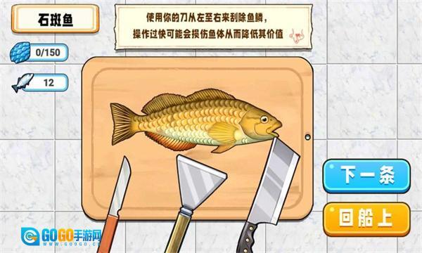 这款休闲游戏把食材处理、刮鳞操作和美食烹饪等玩法融合在一起,搭配上充满奇幻色彩的古风角色,玩起来轻松又解压。不同等级的刀具可供选择,等级越高,刮鳞的速度就越快。